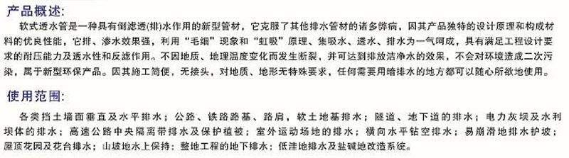鹽城龍昌加強(qiáng)式纖維彈簧透水軟管等由授權(quán)機(jī)構(gòu)中國(guó)南京水利科學(xué)研究院抽樣測(cè)試,結(jié)果表明在地層滑動(dòng)時(shí)可承受足夠的拉力,而且具備全方位滲水、透水性能。